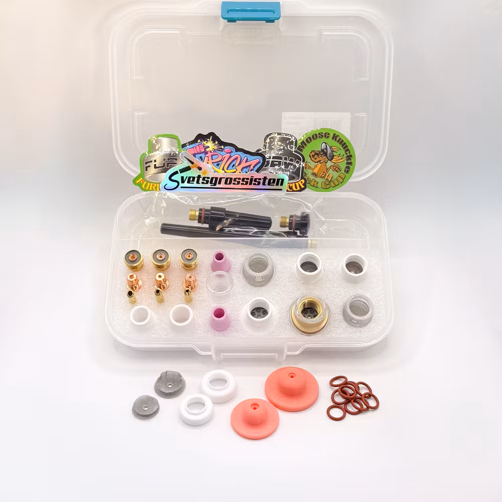 Med detta kit har du alltid rätt gaskåpa nära till hand, oavsett om du arbetar med AC eller DC. De olika kåporna ger optimal gastäckning, stabil ljusbåge och högsta precision i dina TIG-svetsar.