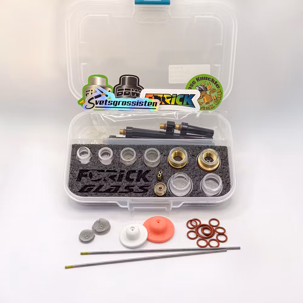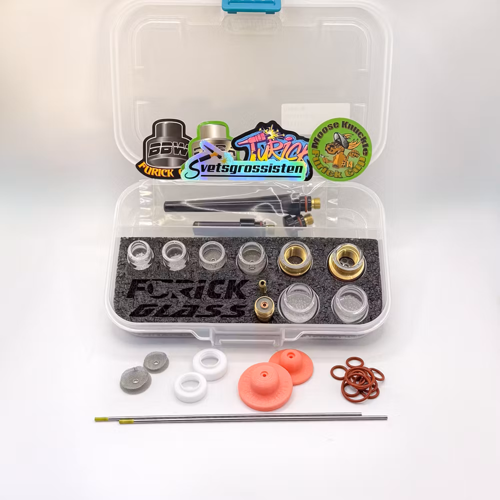 Furick Pyrex Gaskåpor kit är ett komplett set för TIG-svetsning, framtaget för svetsare som vill ha maximal precision och kontroll. Kitet innehåller flera olika glaskåpor tillsammans med gaslins, wedge collet och viktiga tillbehör som gör det enkelt att uppnå rena och stabila svetsar.